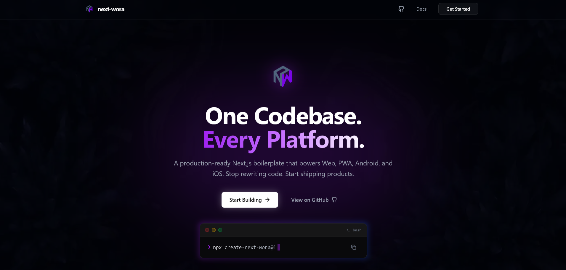 A write-once, run-anywhere application framework that combines Next.js with Electron and Capacitor to build web, desktop, and mobile apps from a single codebase. next-wora was designed to help developers ship cross-platform products faster while keeping a unified architecture and developer experience.